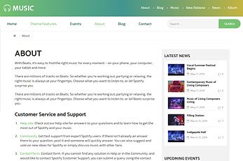 The main quality that determines a site’s usability is its ease to navigate through pages and easily reach the desired result. This can be achieved through a proper navigational scheme on the website. The more pages listed in the menu, more easily will they be found by the end users. Therefore, Music theme comes with a mega menu support that lets you create a large menu with a number of menu items.