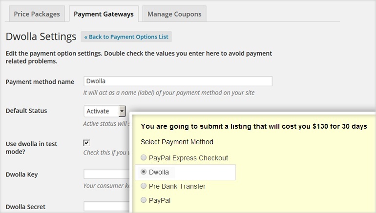 This add-on integrates Dwolla payment method on your Tevolution powered website. Dwolla is an online payment network that integrates directly with your bank account without the need of any credit/debit cards to offer cheap and secure online transactions in United States.