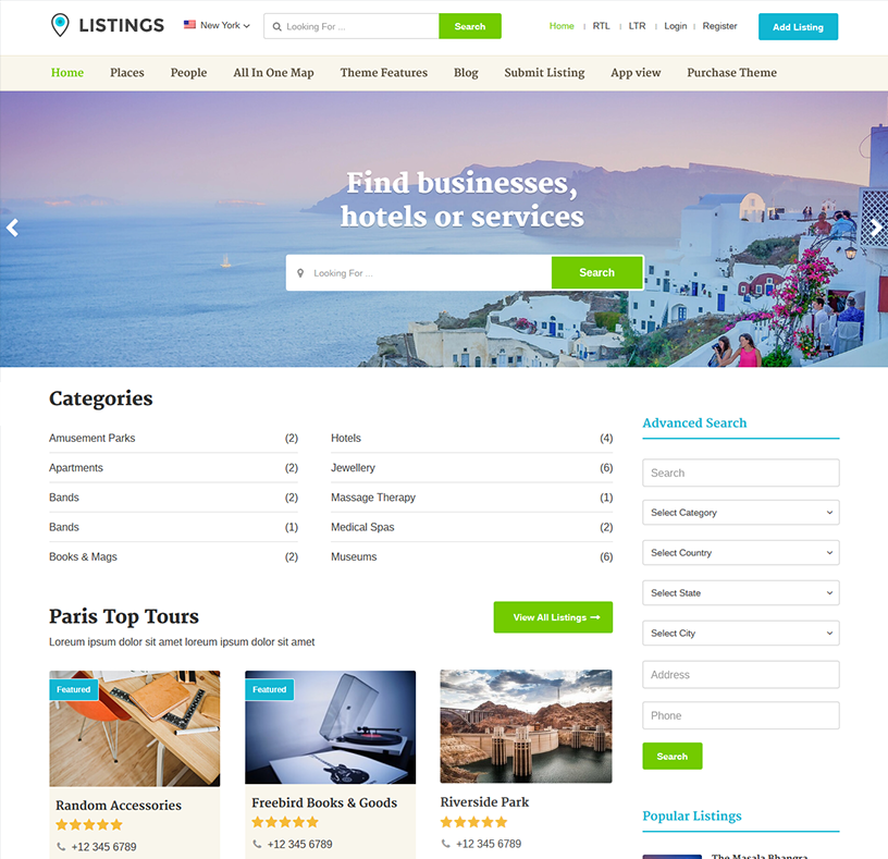 Listings is a very stylish Directory child theme which attracts the visitors easily. It is specifically designed with a big slider and search on it in a very decent color combination which creates a rich look and feel for the visitors.