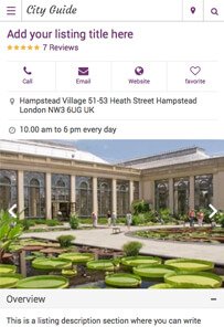 This theme is responsive and it’s designed to look good on any device. As well as this, you also have the option to activate the theme’s mobile app view. This cool view provides a minimal and even quicker-loading times on mobiles. The theme’s mobile app view can easily be switched on or off from your admin dashboard’s theme settings. You can click CityGuide Mobile App View to try the mobile app view from your mobile if you like.