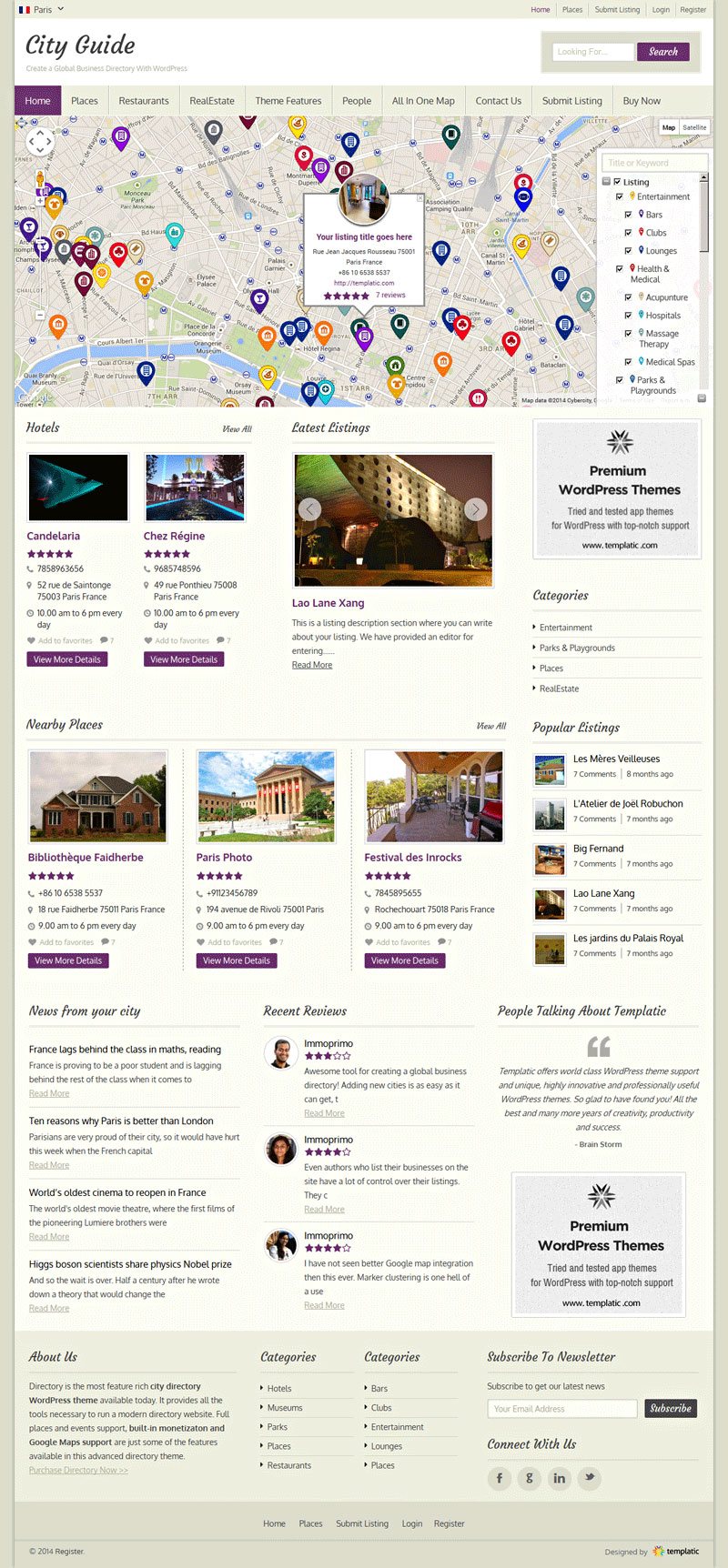 Get one of the best city guide WordPress themes available today for online directories. This powerful system is ideal for city or travel guides. Multi-city and geolocation features ensure users can locate what they're looking for with ease.