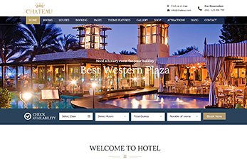 The homepage of Chateau comes with a quick booking. This booking widget is elegantly positioned under the theme’s homepage image slider. It enables the users to reserve very quick and simple.